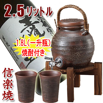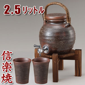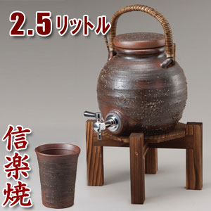 信楽焼 焼酎サーバー 手付きサーバー 2.5L(焼き杉木台付)・専用カップ2個付き