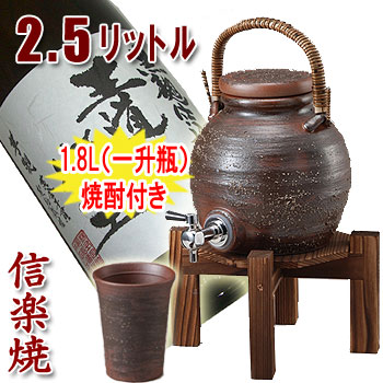 信楽焼 焼酎サーバー 手付きサーバー 2.5L(焼き杉木台付)・専用カップ付き