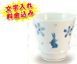 有田焼 焼酎カップ 花うさぎ 文字入れ