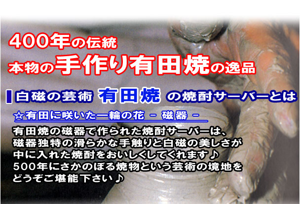 有田焼独特の光沢感が高級感を演出します☆インテリアとしても最適で、卒業記念などの贈り物としてもたいへん人気です。幸せを運んでくれる焼酎サーバーです♪