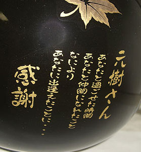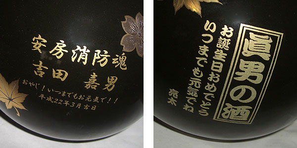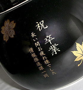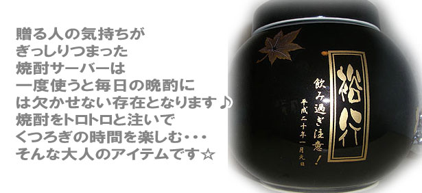 黒色のサーバーに金文字で文字を入れるので高級感があります。男性・女性どちらにも人気です記念品にどうぞ。