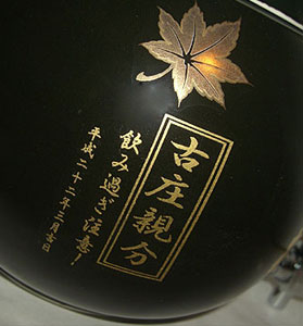 黒いサーバーに金の”モミジ”と”桜の花びら”が、