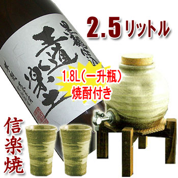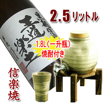 灰釉刷毛目2.5L(焼杉木台付)・専用カップ付き・本格芋焼酎王道楽土1.8L