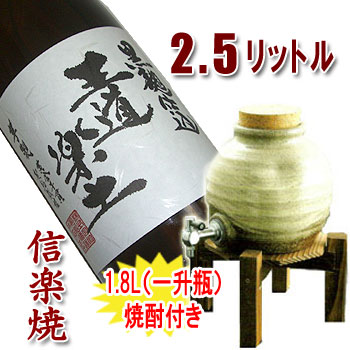 灰釉刷毛目2.5L(焼杉木台付)・本格芋焼酎王道楽土1.8L