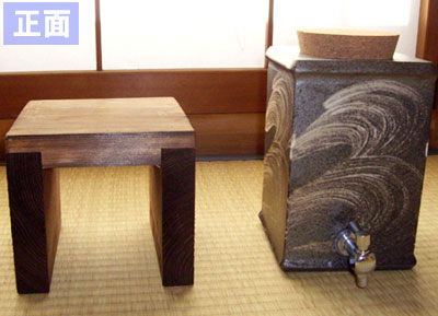 信楽焼 焼酎サーバー 1.8L(流線) 超得セット(焼酎カップ2個・焼杉木台付)