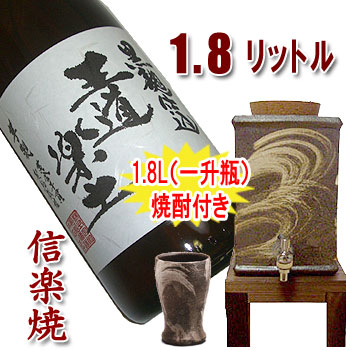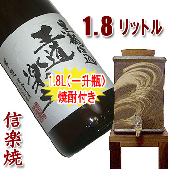 信楽焼 焼酎サーバー 1.8L(流線) お得セット(焼酎カップ・焼杉木台付)